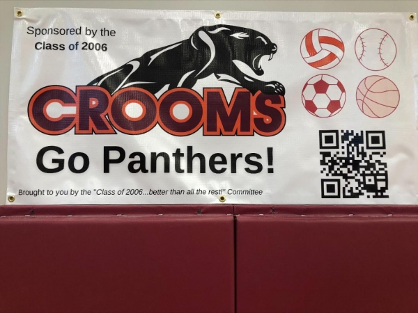 The Silver level banner sponsored by the Class of 2006 section of the Crooms AoIT Alumni Association proudly hanging in the new Crooms AoIT gym - Go Panthers!