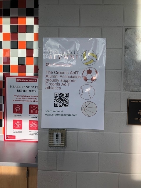 The bronze level banner poster by the Crooms AoIT Alumni Association proudly hanging in the new Crooms AoIT gym - Go Panthers!